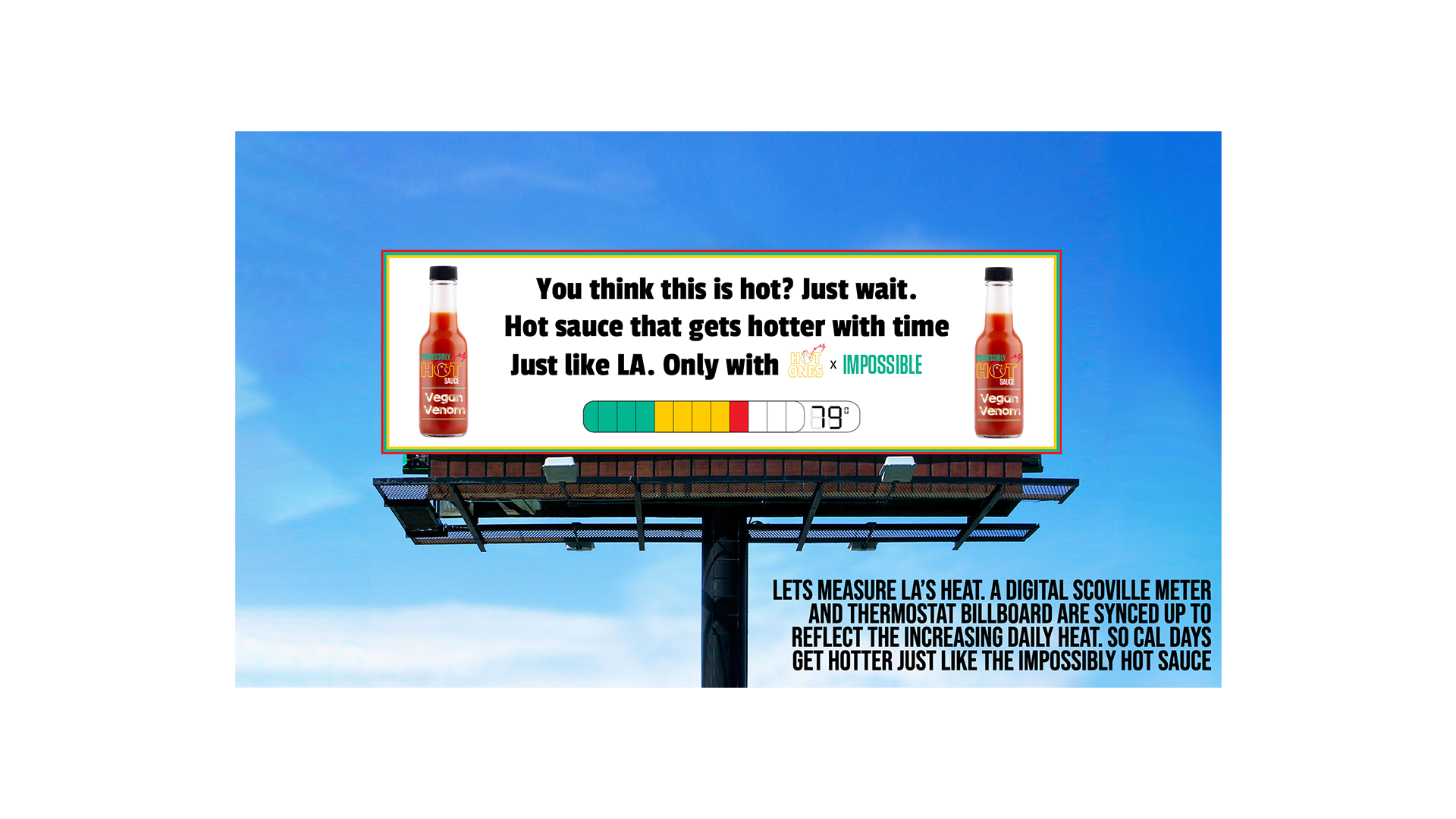 Hot Ones x Impossible Meat Impossibly Hot Sauce ADDY 2022- Silver Art Director: Emma SheplerCopywriter: Will Engebretson