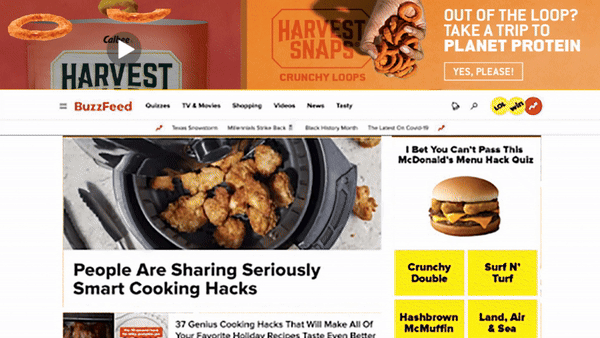 The goal of this partnership is to get as many eyeballs on our brand/product as we possibly can to help increase of SOV in the snack category. We also did a full takeover with banners and an animated loop home screen effect.